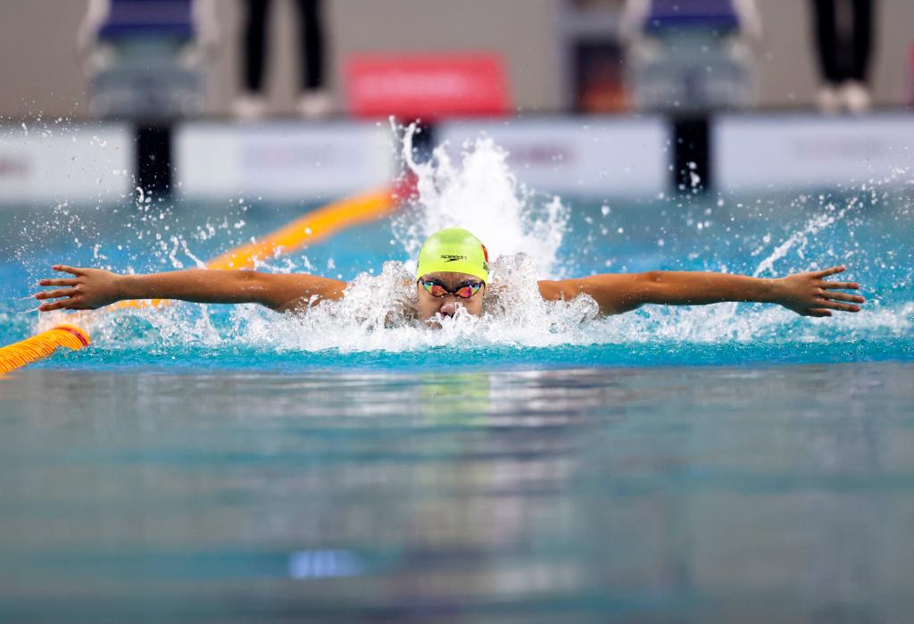 2025年11月10日,山东队选手张展硕在男子400米自由泳决赛中。新华社记者 杜宇 摄
