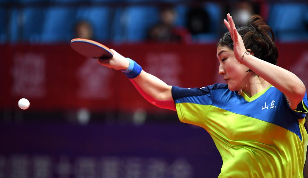 2021年9月21日,陈梦在第十四届全运会乒乓球女子团体决赛中。山东队1比3不敌辽宁队,获得亚军。新华社记者 李安 摄