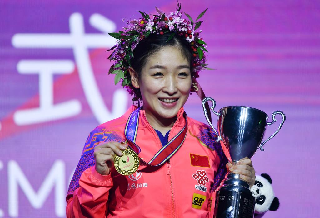 2019年10月20日,冠军刘诗雯在国际乒联女子世界杯颁奖仪式上。新华社记者 薛玉斌 摄
