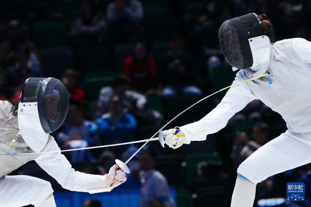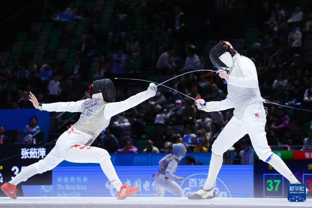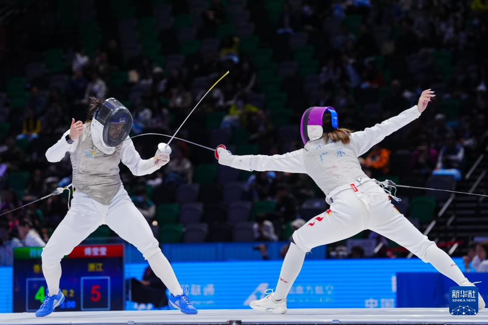 11月20日,江苏队选手霍兴欣(左)和广东队选手宋玥在比赛中。