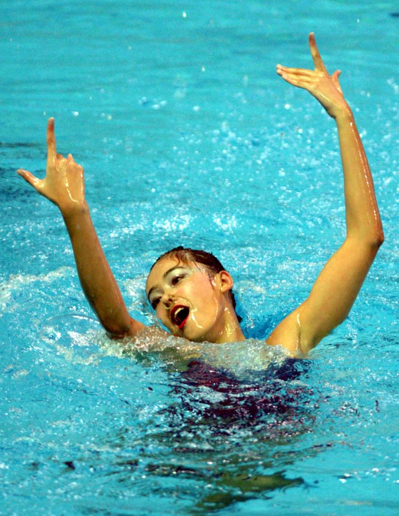 2005年9月19日,欧阳善盈在第十届全运会花样游泳比赛个人自由自选比赛中。新华社记者 杨磊 摄
