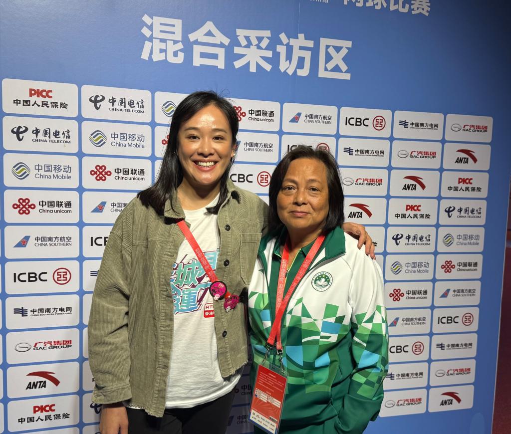本届全运会上,欧阳善盈和她的母亲,澳门网球队领队吴玉玲合影。受访者供图