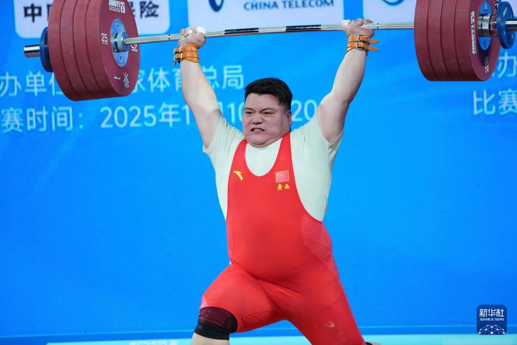 11月20日,广西队选手梁敏华在抓举比赛中。最终,他获得亚军。