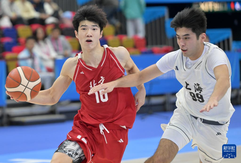 11月20日,北京队球员偰李永炜(左)在比赛中突破。