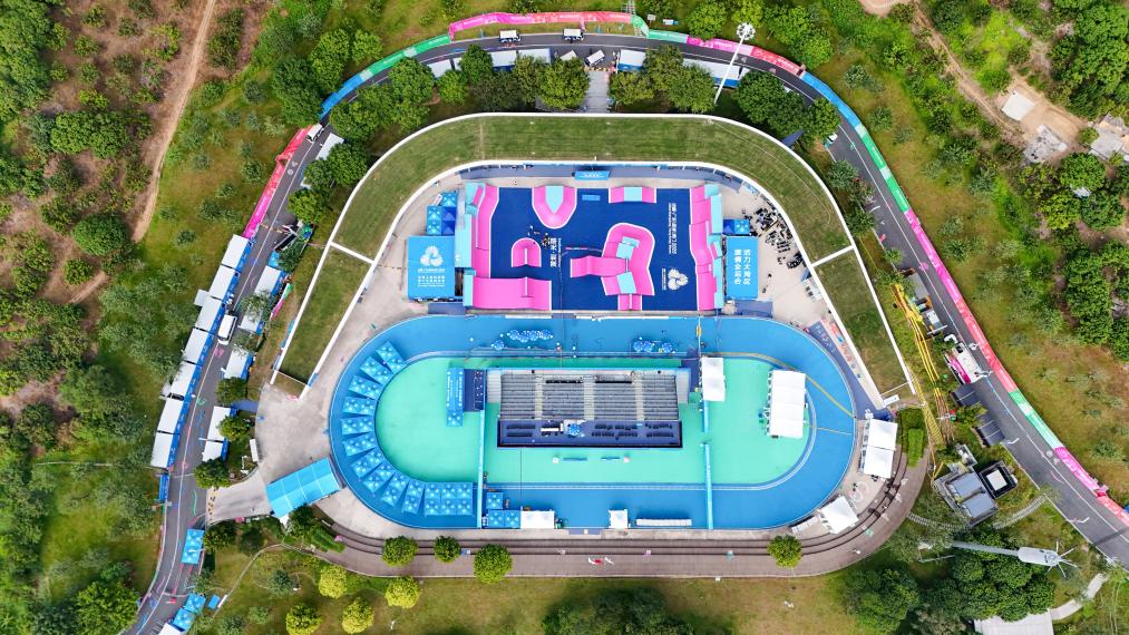 这是10月25日拍摄的深圳市光明区虹桥公园。全运会自由式小轮车比赛在这里举行。