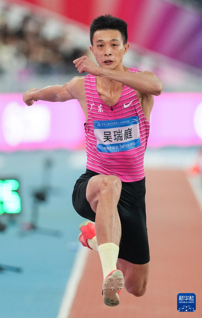 当日,第十五届全国运动会田径项目男子三级跳远决赛在广州举行。