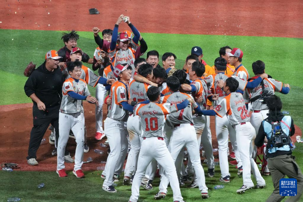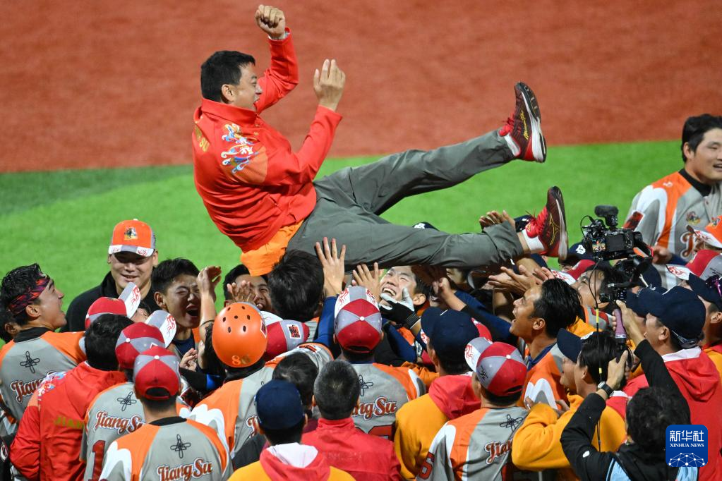 11月20日,江苏队成员在比赛后庆祝夺冠。