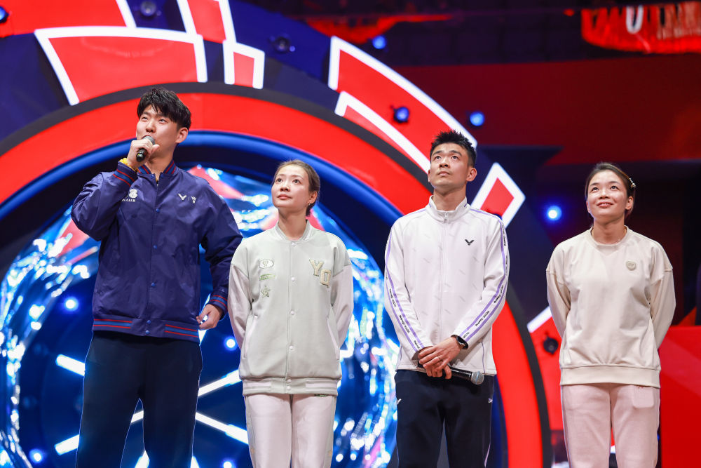 ↑12月21日,刘雨辰、黄雅琼、郑思维、陈清晨(从左到右)在退役仪式上。
