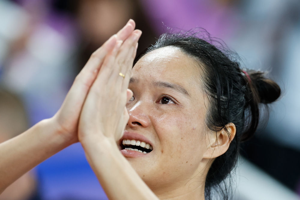 ↑8月31日,石宇奇在2025年世界羽毛球锦标赛男子单打决赛后跪地而泣。