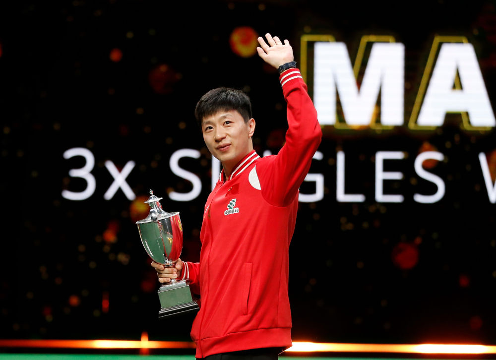 ↑2023年5月28日,马龙手持复刻圣·勃莱德杯向观众挥手致意。当日,在南非德班进行的2023年世界乒乓球锦标赛的最后一个比赛日,国际乒联第一副主席、世界乒乓球职业大联盟(WTT)董事会主席、前中国乒协主席刘国梁为中国选手马龙颁发复刻圣·勃莱德杯,以表彰他连续三届夺得世乒赛男单冠军。马龙于2015苏州世乒赛、2017杜塞尔多夫世乒赛以及2019布达佩斯世乒赛上夺得男单项目三连冠。