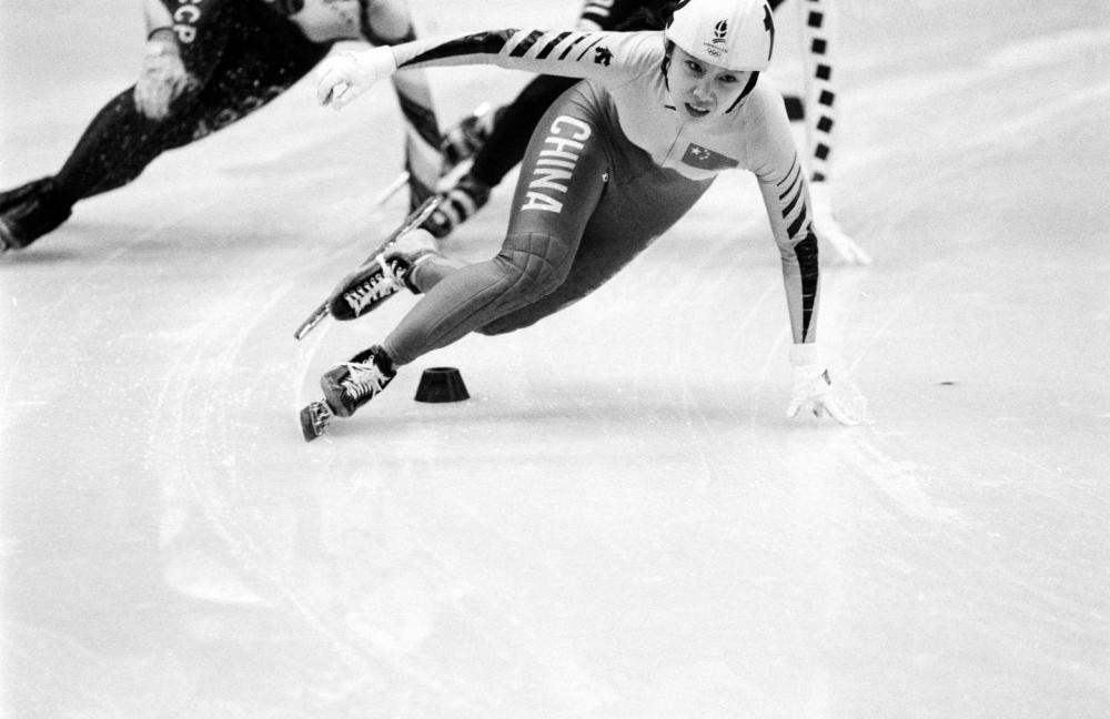 ↑1992年2月22日,李琰在阿尔贝维尔冬奥会短跑道速滑女子500米决赛中夺得银牌。