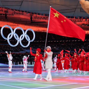 ↑2022年2月4日晚,中国代表团在北京冬奥会开幕式上入场。