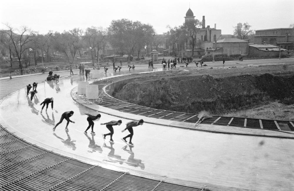 1979年拍摄的哈尔滨市的一座滑冰场。新华社记者周确摄