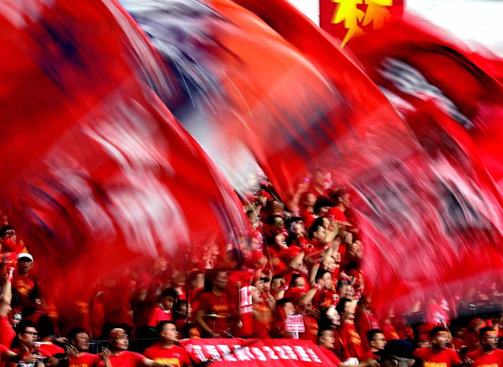 2025年10月19日,在“苏超”半决赛中,南通队球迷为球队加油助威。新华社发(曹政 摄)