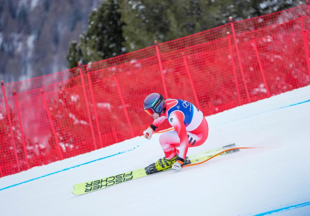 2月4日,米兰冬奥会高山滑雪男子滑降官方训练举行。新华社记者 颜麟蕴 摄
