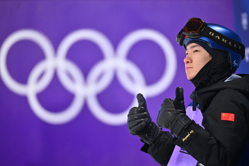 2月7日,中国选手苏翊鸣在第二跳后。新华社记者 胡超 摄