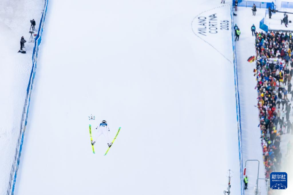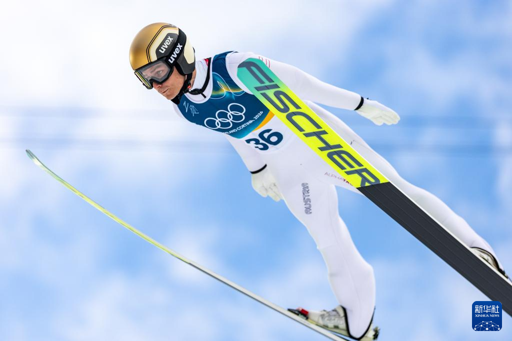 2月17日,奥地利选手兰帕特尔在个人大跳台比赛轮中。