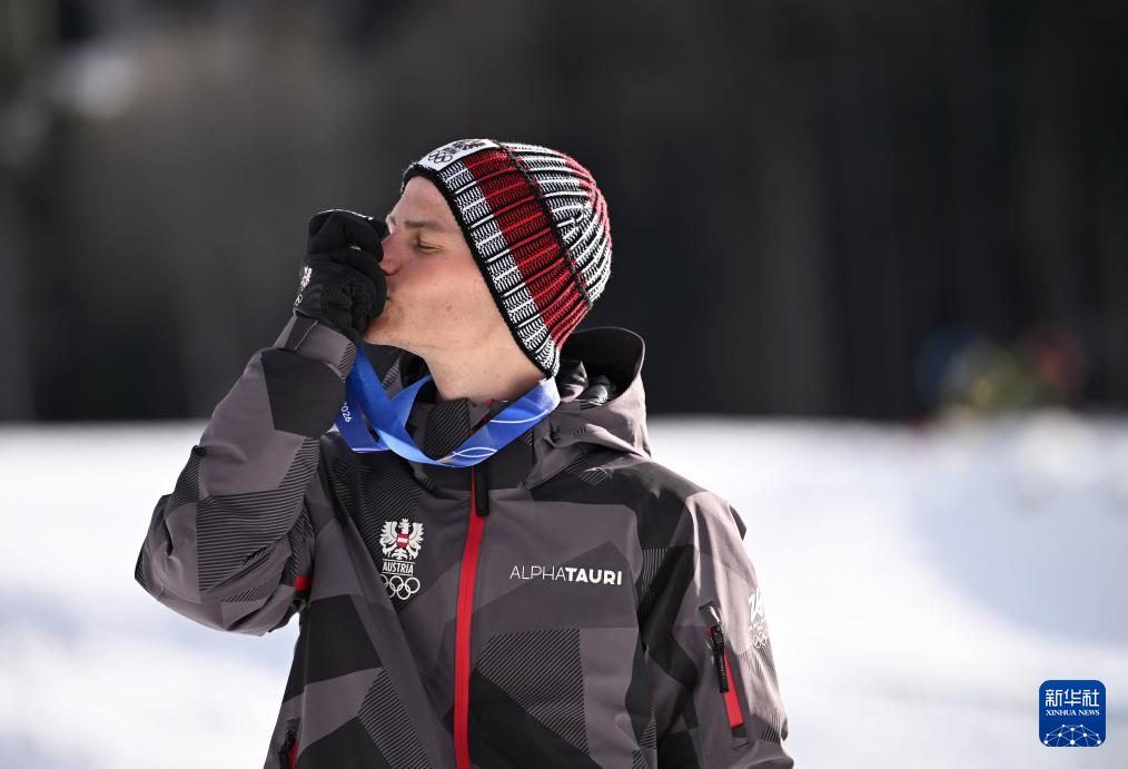 2月17日,亚军奥地利选手兰帕特尔在颁奖仪式上。