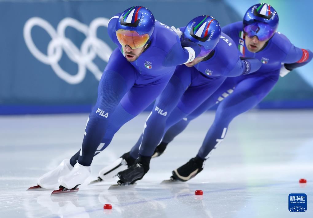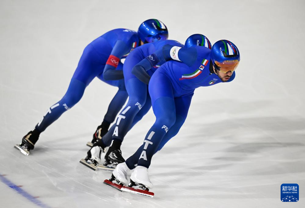 当地时间2月17日,米兰-科尔蒂纳冬奥会速度滑冰男子团体追逐决赛在意大利米兰举行。