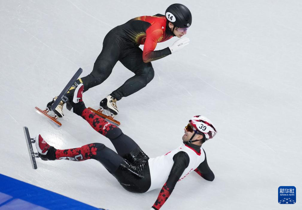 2月18日,中国队选手刘少昂(右三)在比赛中。