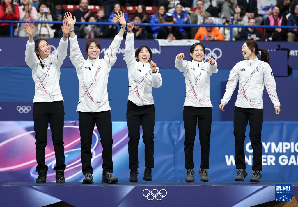 2月18日,冠军韩国队在颁奖仪式上。