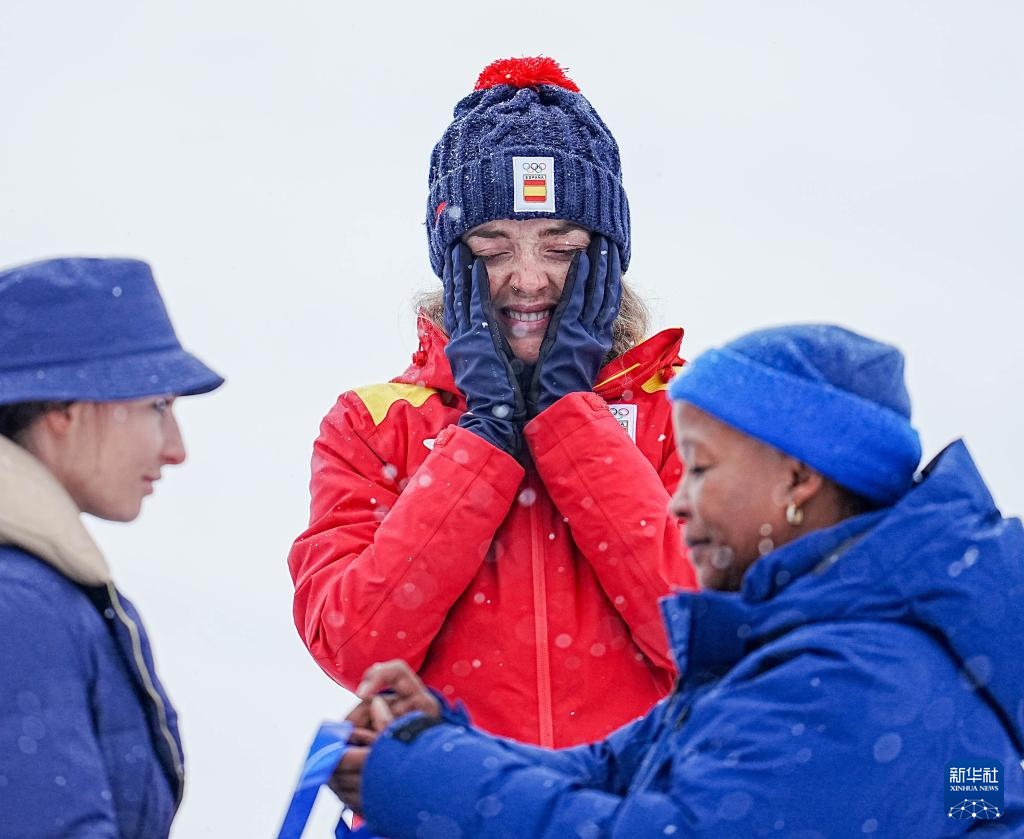 2月19日,西班牙选手阿隆索·罗德里格斯在比赛后庆祝。她获得季军。