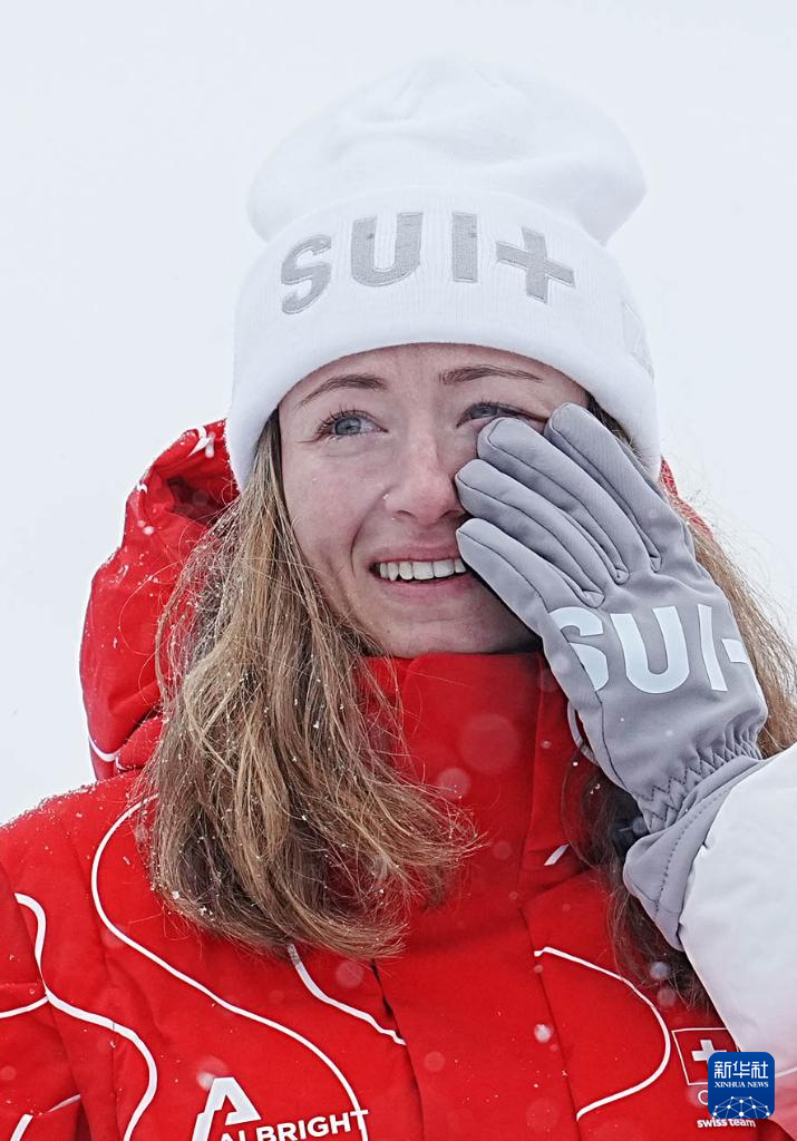 2月19日,瑞士选手法东在比赛后庆祝。她获得冠军。