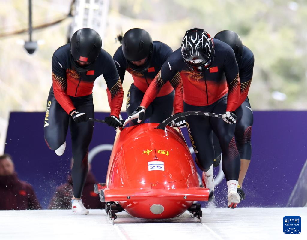当地时间2月21日,米兰-科尔蒂纳冬奥会雪车项目男子四人赛在意大利科尔蒂纳举行。