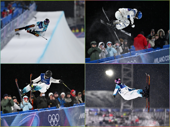 图为李方慧(左上)、谷爱凌(右上)、张可欣(左下)、刘奕杉(右下)在比赛中。新华社发