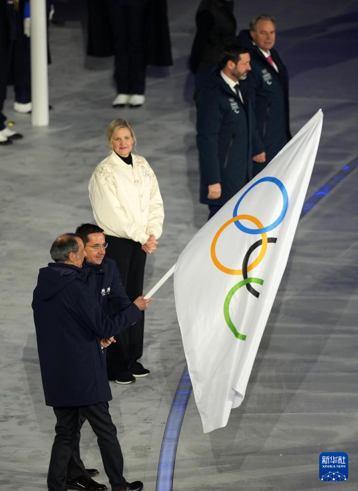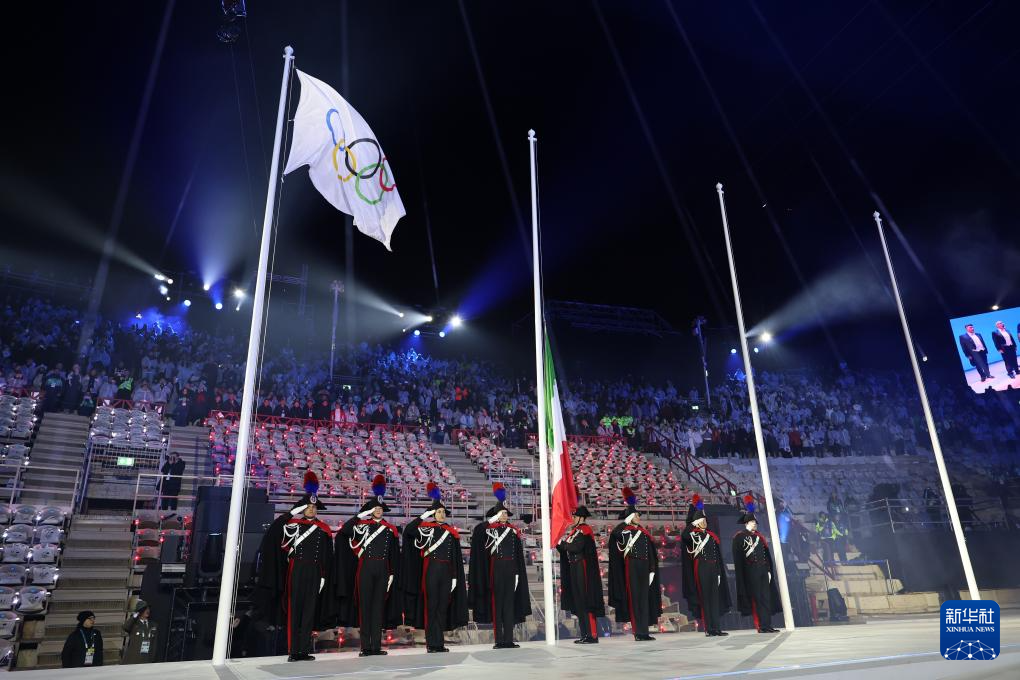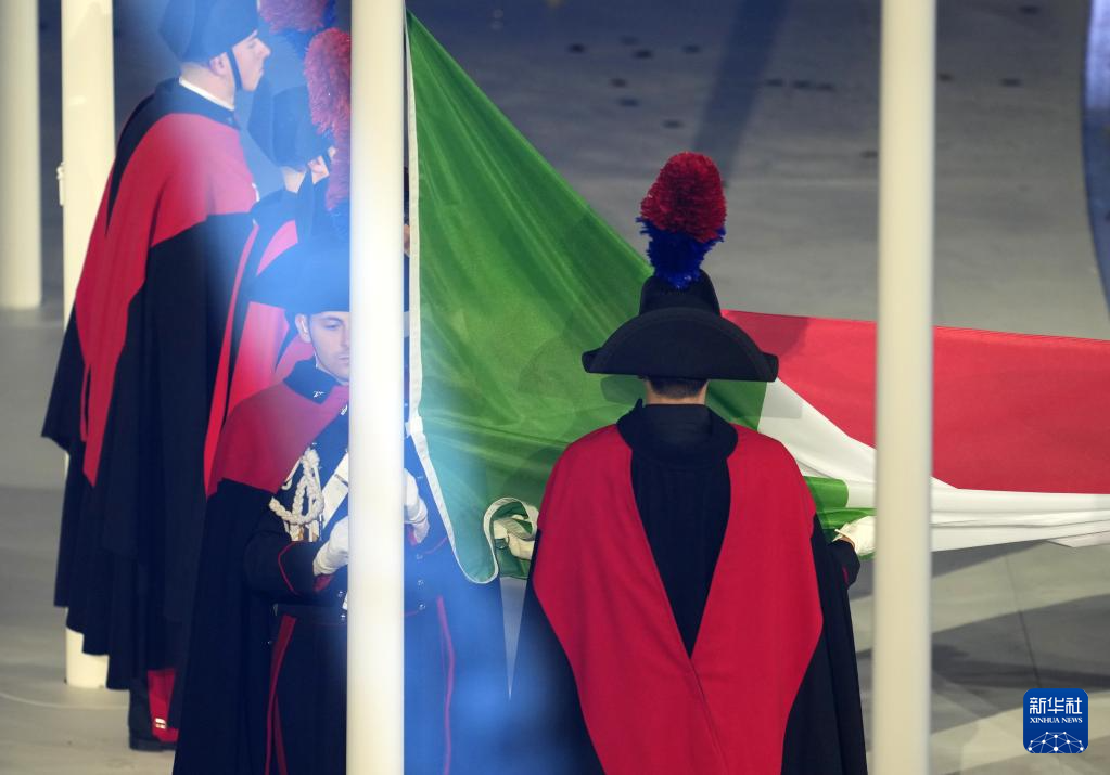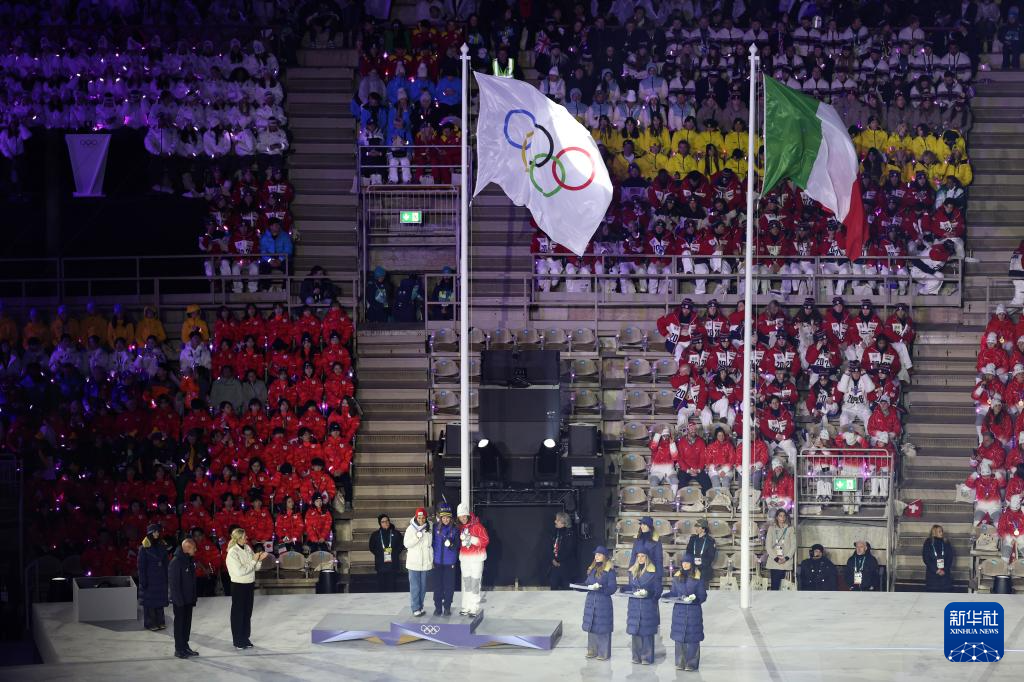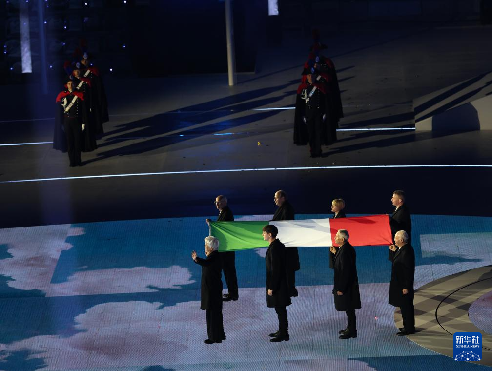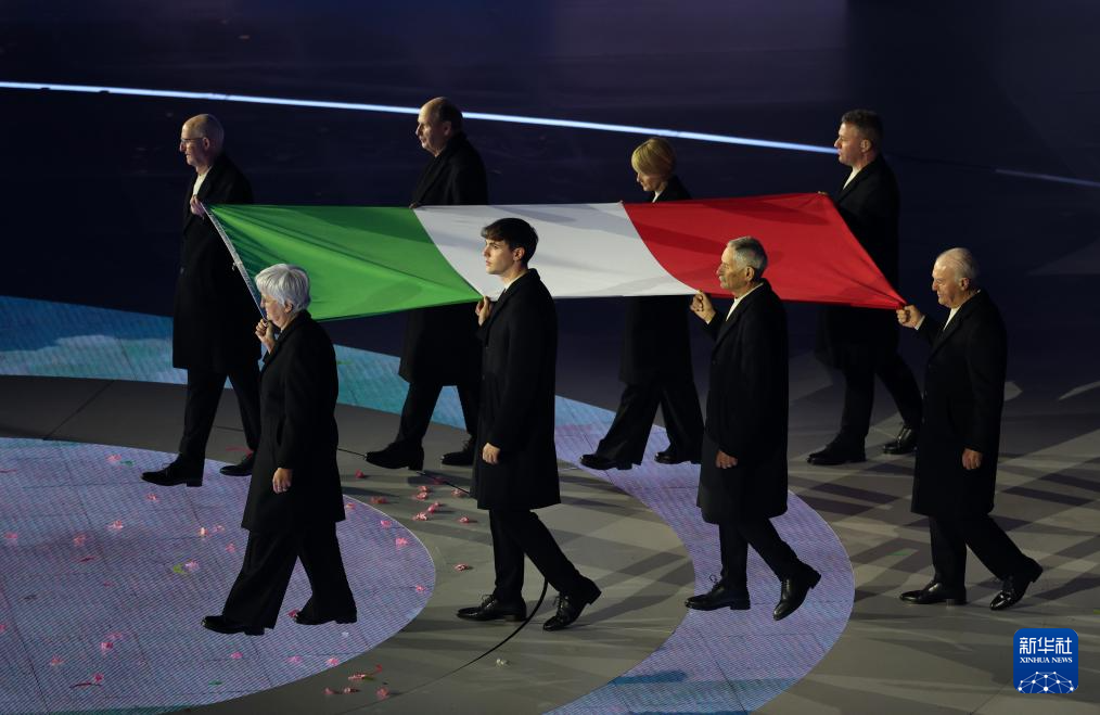2月22日,意大利国旗在闭幕式上升起。