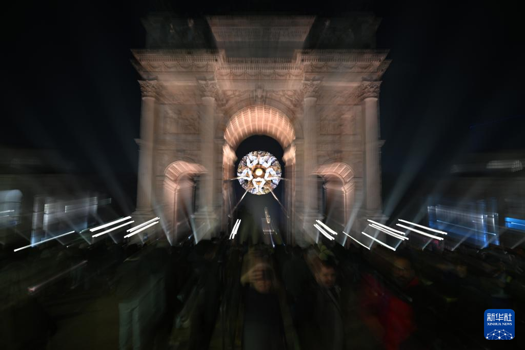 这是2月22日在意大利米兰和平拱门拍摄的熄灭后的主火炬。