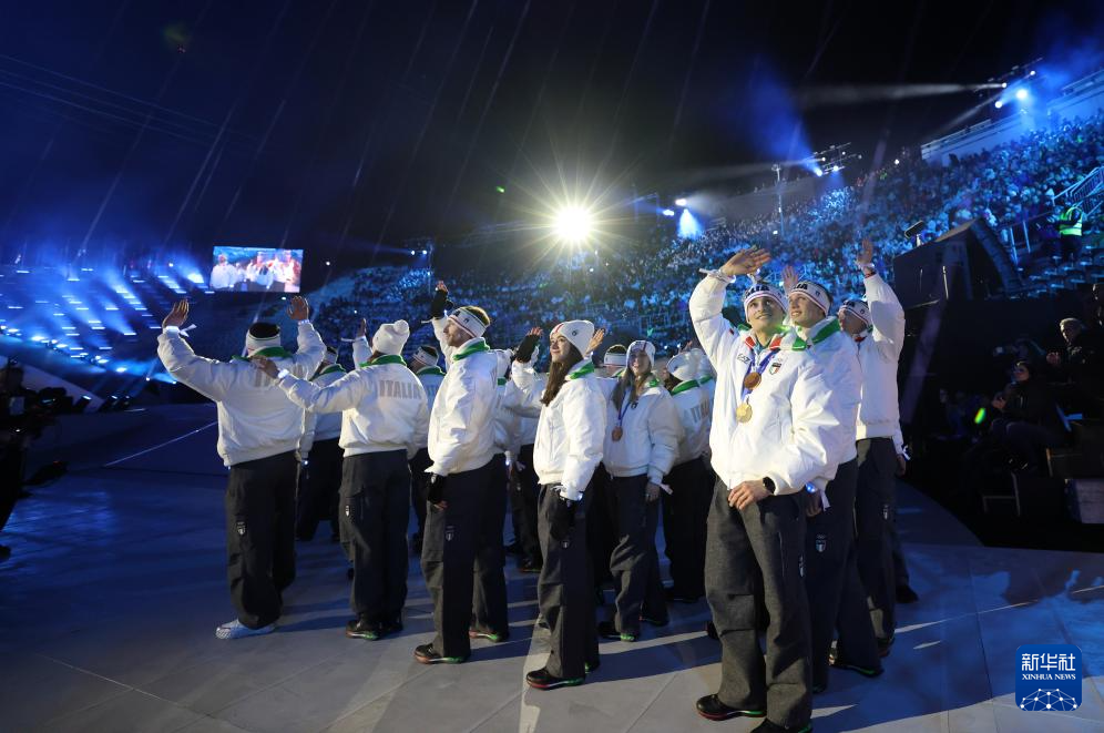 2月22日,意大利体育代表团在闭幕式上。