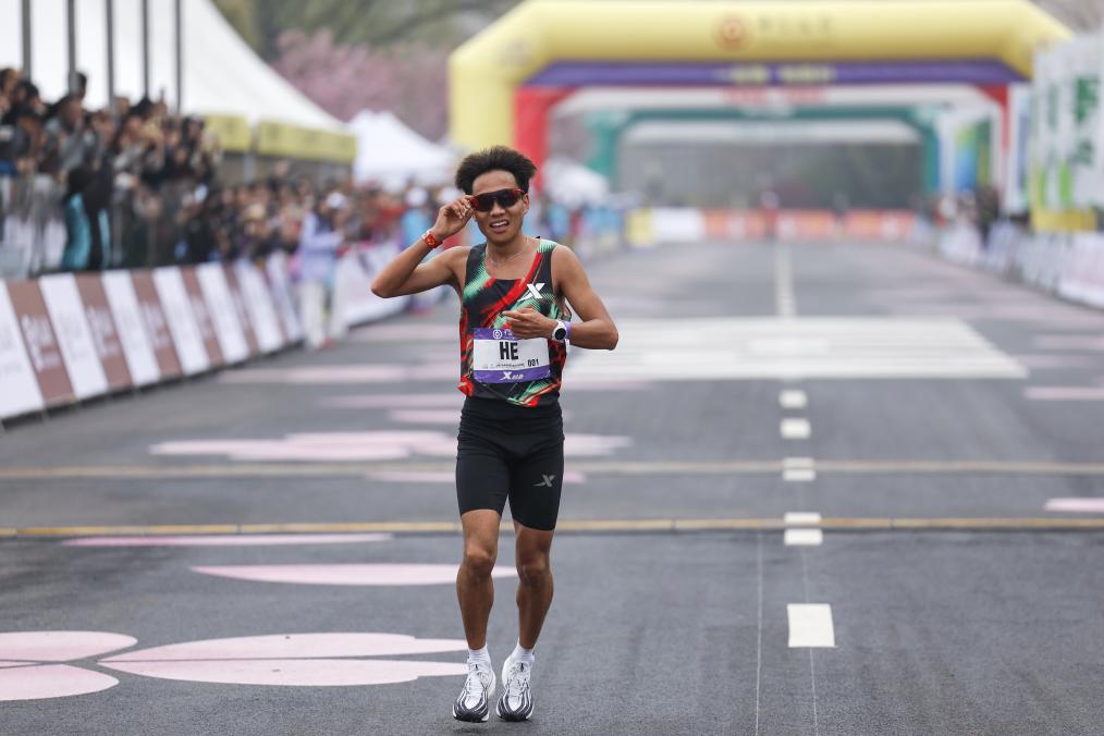 新华社武汉3月22日电(记者乐文婉)春风轻拂,落英缤纷。22日,马拉松名将何杰在武汉马拉松以2小时10分56秒的成绩冲线,成为首位完赛的中国选手。