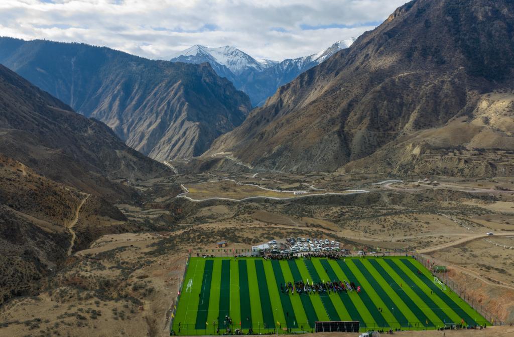 西藏昌都市洛隆县马利镇足球场(无人机照片)。新华社记者 姜帆 摄