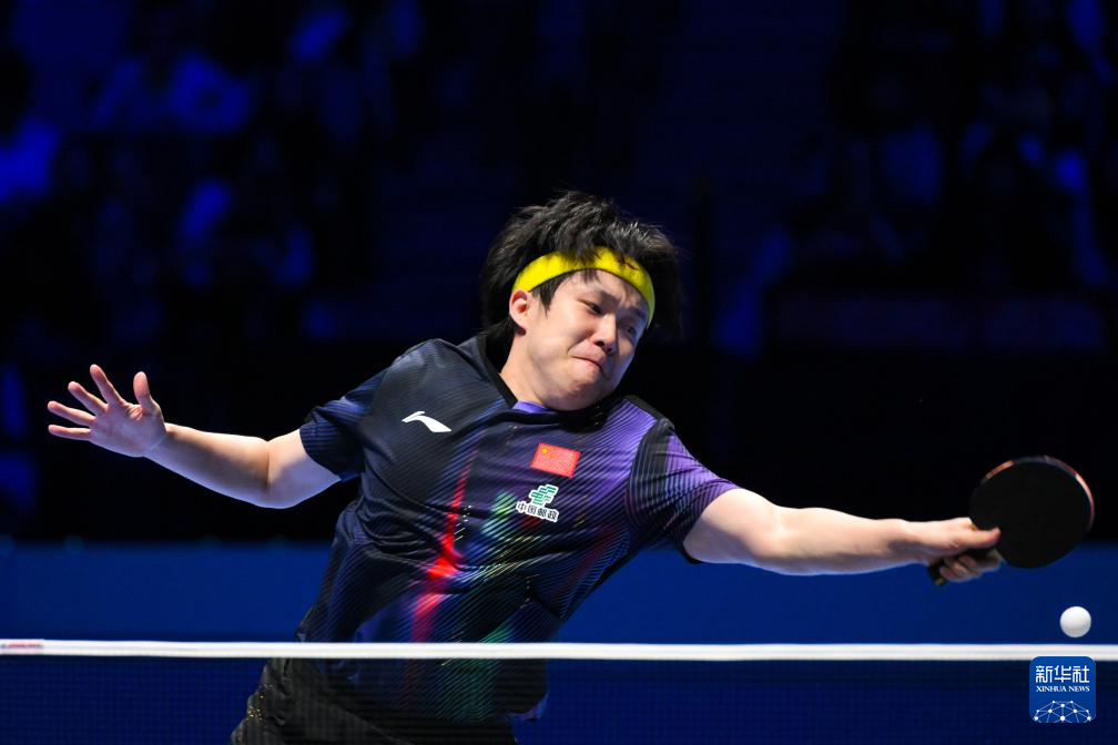 3月31日,中国选手王楚钦在比赛中回球。