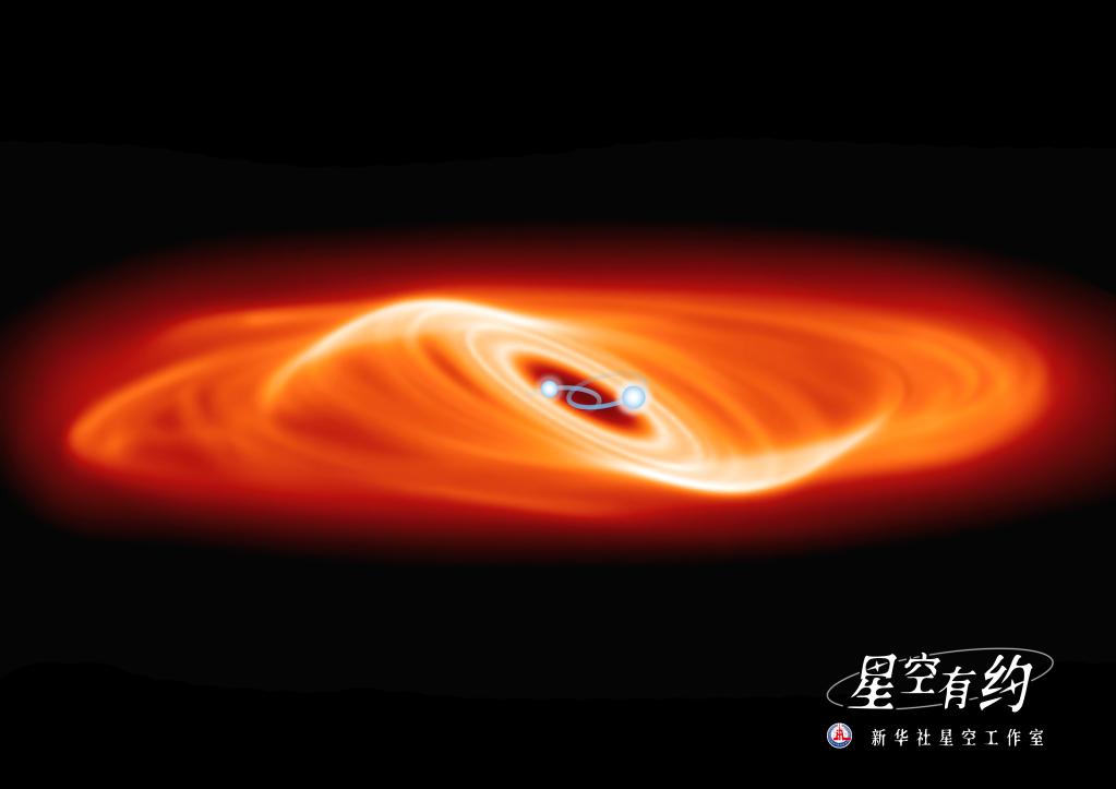原行星盤是在新形成的恒星外圍繞的濃密氣體。據了解,由于雙星及其原行星盤是從同一個巨大的旋轉星云中凝聚而成,因此該盤通常與恒星的軌道位于同一平面上,就像太陽系中大多數行星和衛星的軌道位于同一平面上一樣。但宇宙中仍存在一類罕見的雙星系統,即環繞雙星的原行星盤與恒星的軌道平面成一定角度。