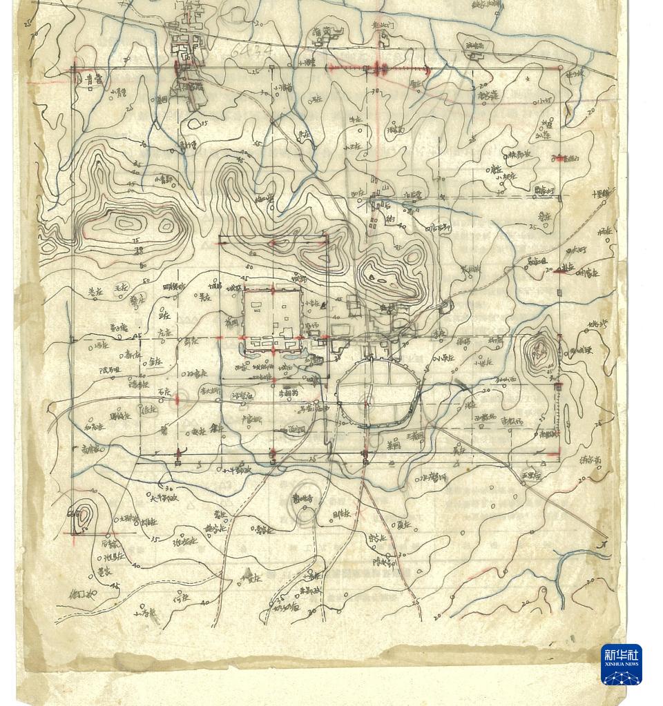 歷史地理學家王劍英手繪的《明中都遺址示意圖》(資料照片)。新華社發(鳳陽縣博物館供圖)