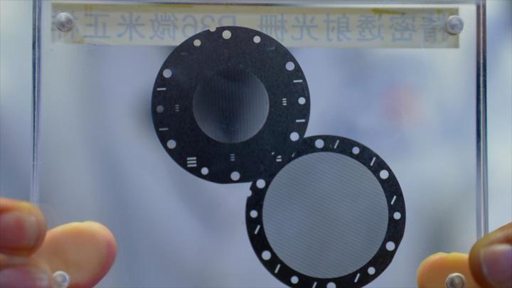 太陽硬X射線成像儀的金屬鎢光柵。新華社記者林凱 攝