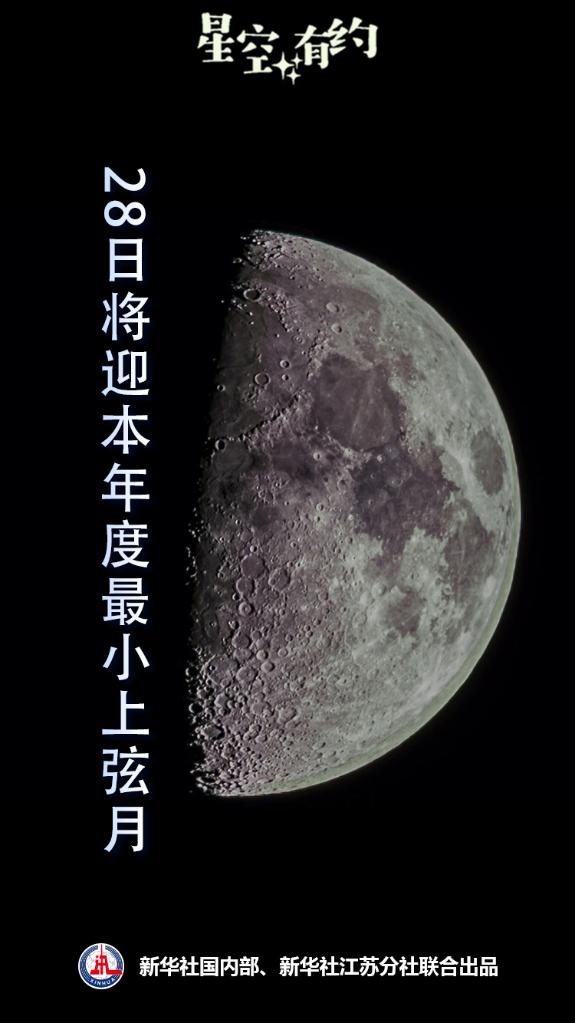 新華社南京4月26日電(記者王玨玢、邱冰清)4月28日5時20分將迎來本年度最小上弦月。此時月球位于軌道遠地點附近,人們看到的月亮像是一個拉滿的弓弦。