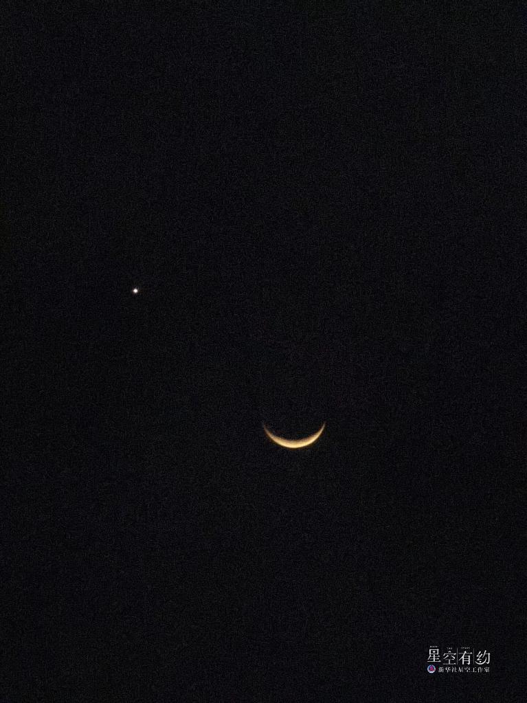 云南省星空攝影愛好者羅新才2023年4月23日在大理洱源拍攝的金星伴月。(本人供圖)