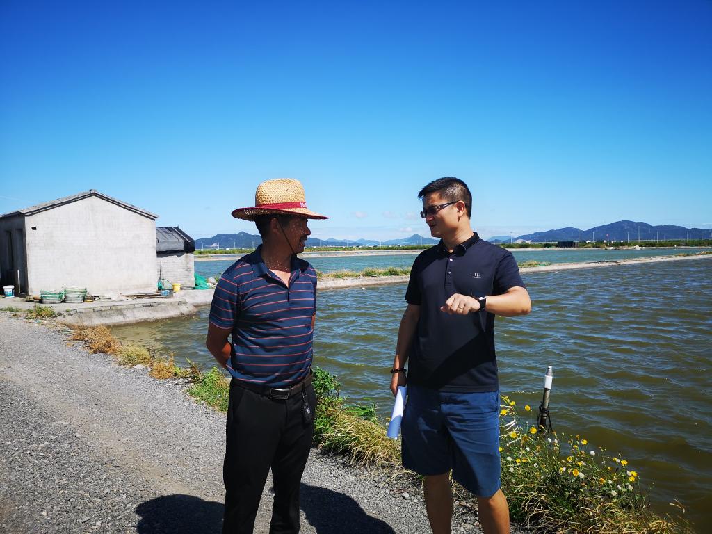 何琳(右)在寧海縣為養(yǎng)殖戶開展技術指導。(何京 攝)