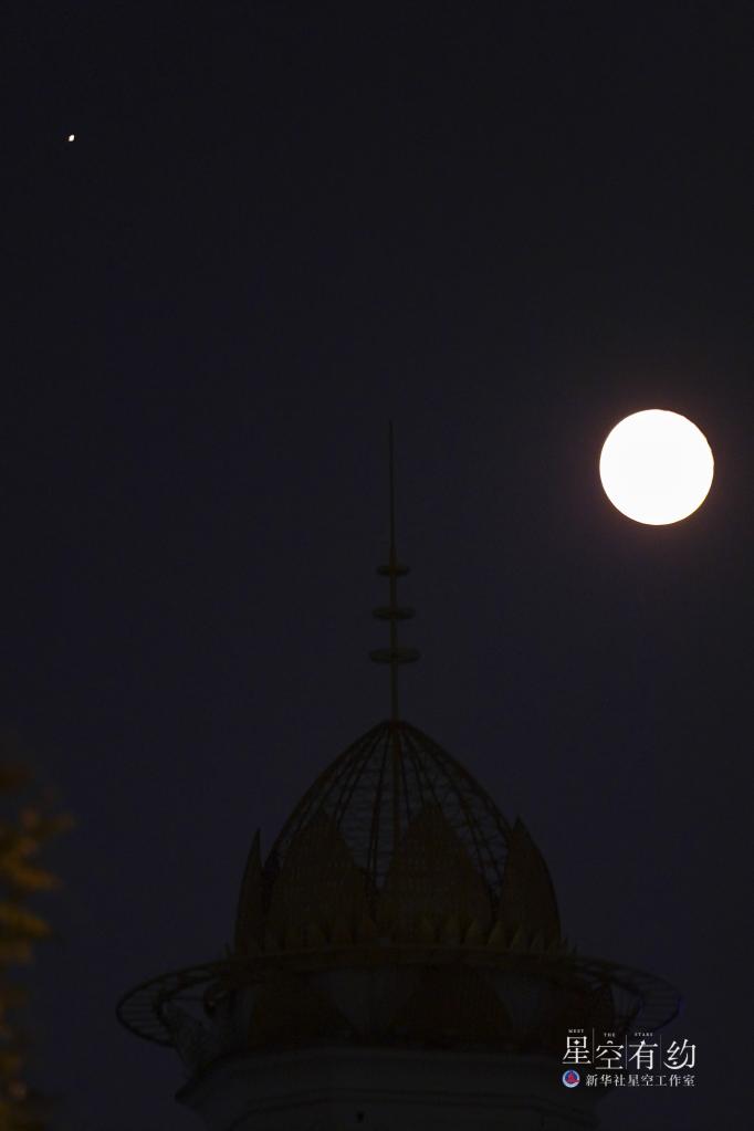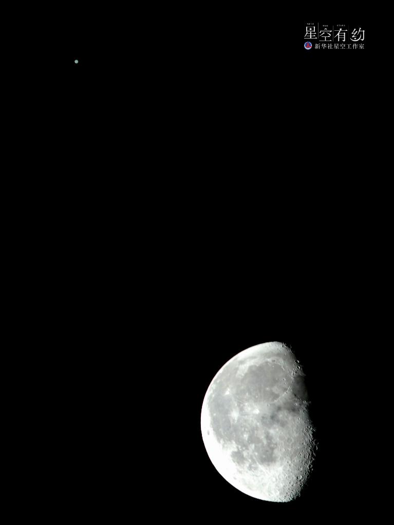 這是2022年9月11日晚在北京豐臺拍攝的木星與月亮。當(dāng)晚,天宇上演木星合月的美麗天象。新華社記者張鋮 攝