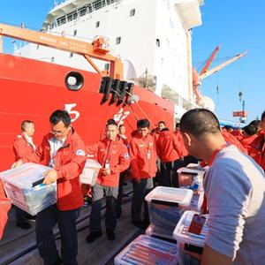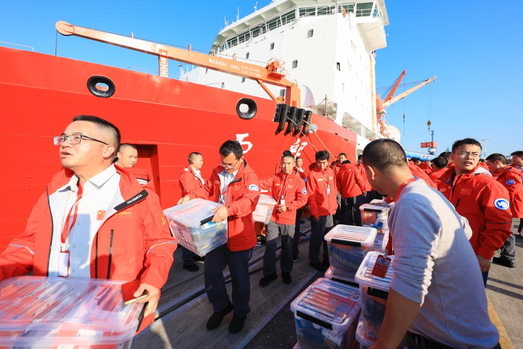 ??? 建設(shè)者們領(lǐng)取前往南極的物資。(受訪者供圖)