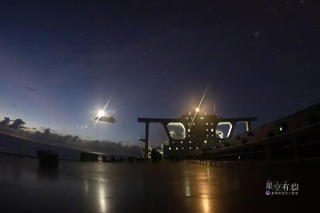 江蘇星空攝影愛好者邵曙光2023年2月22日在大西洋上行進的“海珠榮興”輪上拍攝的金星、木星合月。(本人供圖)