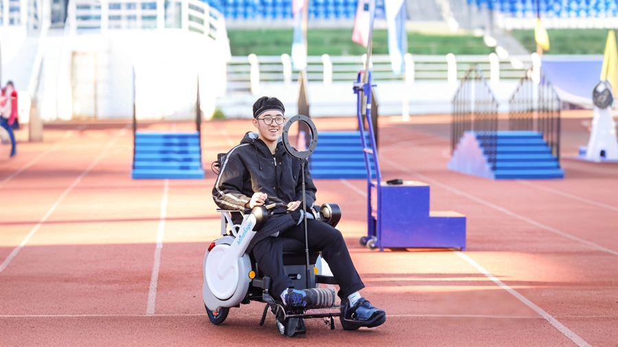 2024年11月,在浙江残疾人未来科技运动会上,一位残疾人运动员体验脑控轮椅。(研发团队供图)