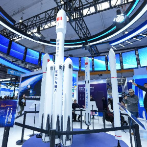 1月23日,观众在2026北京国际商业航天展参观展出的火箭模型。新华社记者 鞠焕宗 摄