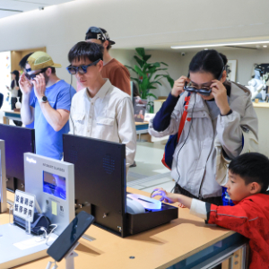 2025年12月24日,深圳前海万象商场内,市民正在体验雷鸟新款观影眼镜。(受访者供图)