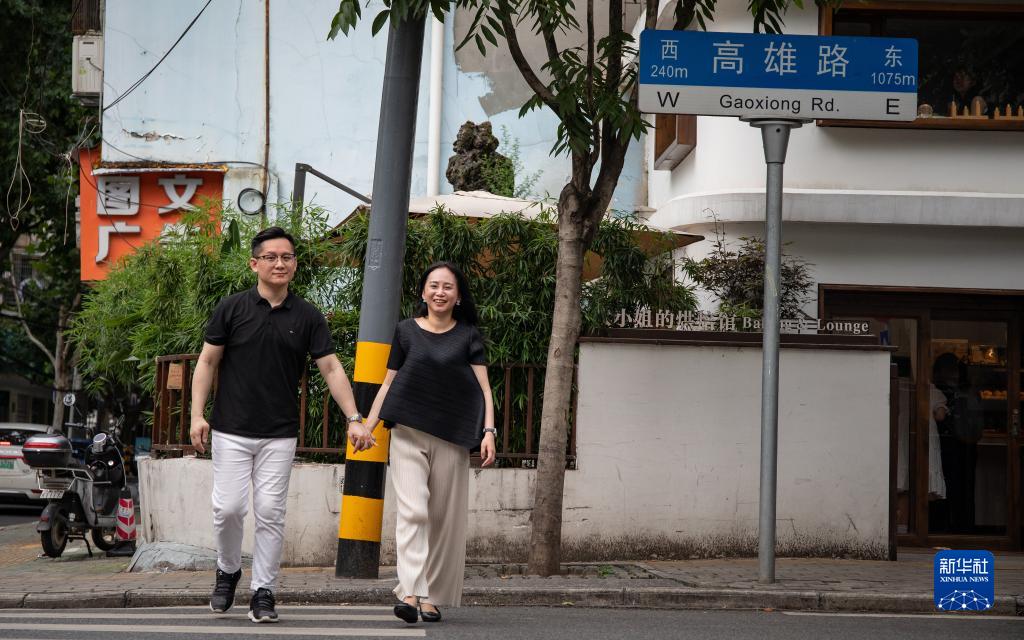 晌午,臺灣青年張立綸帶著妻子來到高雄路。“我特別喜歡這個街角,路邊有綠植,轉彎有大廈,和我在高雄家門口的環境幾乎是一樣的。”張立綸在武漢工作生活多年,常來這里“打卡”,因為身處于此,能夠“遇見臺灣、以解鄉愁”,有“在家”的感覺。