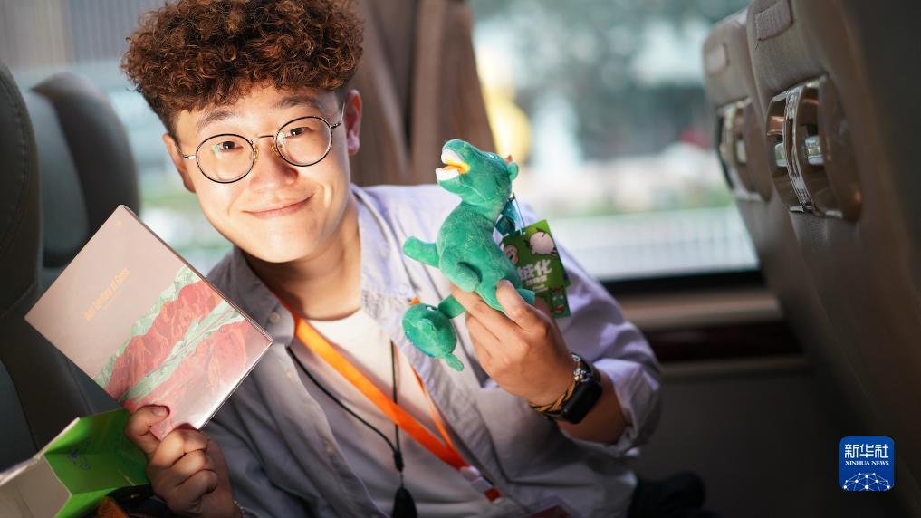 7月17日,李宣展示從甘肅省博物館購買的文創產品。新華社記者 黃揚 攝