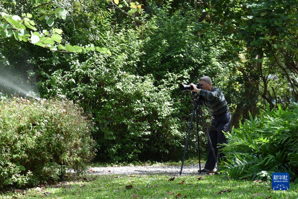 10月23日,一位老年人在臺北大安森林公園內(nèi)攝影。新華社記者 劉斐 攝